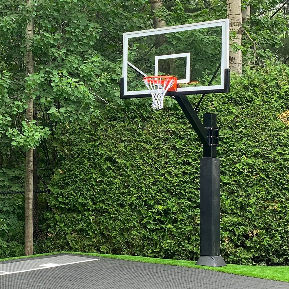 篮板厚度要适中,不能太厚,比如厚度在10MM-12MM刚好,太厚会影响篮球击打的反弹度。篮板材质有多种选择,如钢化玻璃、腈纶、聚碳酸酯、木材和模压塑料等。钢化玻璃无疑是较好的背板材料,通过热处理和化学处理得到加强,但价格较贵。腈纶和聚碳酸酯合成聚合物因真正的回弹和耐用性备受赞誉,价格也不便宜。木质背板便宜且相对耐用,但不能提供持续的反弹,且不透明会影响后面观众的观赛体验。模压塑料易于安装且价格低廉,但不如其他材料耐用。选购玻璃钢篮板需注意检查玻璃钢表面是否有裂痕,螺栓孔是否使用树脂进行密封,因为玻璃钢篮板内部多为多层木工板,密封不严实易导致雨水进入内部引起腐烂、发泡等情况,从而损坏篮板,玻璃钢篮板厚度一般多为30mm。