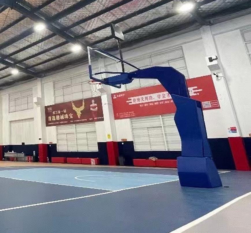 室内场景下,如果场地主要用于篮球比赛或训练,且需要经常移动篮球架,那么可选择方便移动的篮球架,如常见的移动箱体篮球架、挂式篮球架或可升降篮球架。如果所挂的立柱为室内建筑的主要承重结构,可以考虑挂式篮球架,但要注意普通墙面可能承受不了挂式篮球架的重量,特别是有扣篮情况时可能会出现危险。可升降篮球架有液压篮球架和机械篮球架之分,电动液压篮球架价格较高,若要求不高可选择手动液压篮球架。